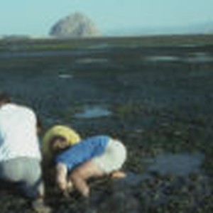 A group of students digs for clams with their hands.
