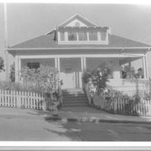 Photo, black and white: Sebastopol house at 7168 Calder Avenue a Queen Anne built in 1895 in the Calder Addition. House photographed in 1993 by Evelyn McClure for her book "Sebastopol, California : History, Homes and People."