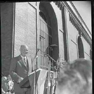 10/8/52 - "Ike" Eisenhower visits Sacramento. Greets crowd from speaker's platform. 7 of 9
