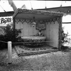Photo--black and white, from Borba 8" x 10" celluloid negative: Gravenstein Apple Show, about 1930. An unidentified display of "Little Jack Horner" made of apples. In the background a display of G. S. Mascagni Company of Sebastopol of "Big Hit" brand apples.