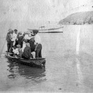 Photo--black and white: An overcrowded rowboat at Bodega Bay.