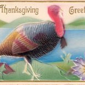 Postcard--color painting: Thanksgiving postcard turkey and caption: "Thanksgiving Greetings." Handwritten message on back to Mary Guisler. Circa 1913