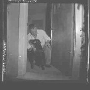 1964 - Dogs - Man & dog in doorway.