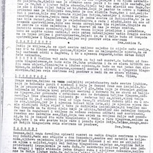 Circular letter for the months of July and August 1981 containing a report on the women's meeting held in Sloveina in June 1981, a short announcement of the annual meeting to be held in Zagreb in August 1981 and two short reports on women's work in Zagreb and Leskovac. [Description English/roman)] Okružno pismo za srpanj i kolovoz 1981. godine koje sadrži kratak izvještaj sa sestrinskog sastanka u Sloveniji održanog u lipnju 1981., kratku obavijest za godišnji sastanak koji će se održati u Zagrebu u kolovozu 1981. i dva kratka izvještaja ženskog rada iz Zagreba i Leskovca. [Description (original non-English/roman language/script)]