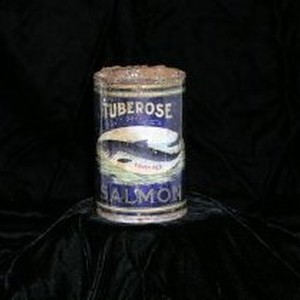 Can of "Tuberose Salmon." Manufactured by Mebius & Drescher Co.