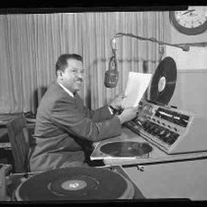 SERIES: of three photographs of a Radio Disc Jockey.