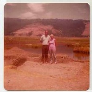 Photographs of Bolinas Bay. Two unidentified archaeologists posing in a trench.