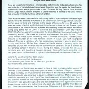 Obituary, Sweetie Jordan-Lacy, after 2005. By Glenda Williams Goodson. [Description English/roman)]