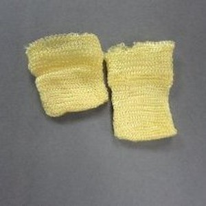 Pair of yellow knit doll socks.