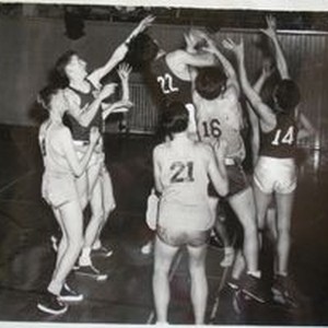 Photo--Black and white: Analy High School basketball B team of 1949-50. Analy Tigers vs Santa Rosa. Analy 18--Santa Rosa 24