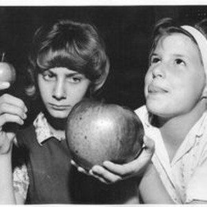 Photo, black and white: Kathleen Hallberg left and her sister Donna Louise Hallberg (Marovich). Picture taken November 22, 1963. Rome apple from Hallberg Orchards, Sebastopol, CA. Weight 2 lbs, 3 oz, circumference 17 5/8." Largest apple in the world at the time.