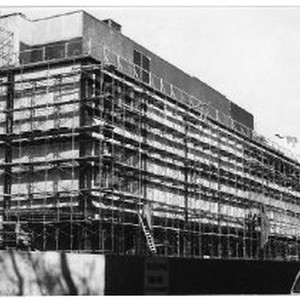 Exterior view of the new Bank of America at 900 8th Street and I Street nearing completion. It is on the southwest corner on the site of the old Sacramento Free Library. Construction began in the fall of 1958.
