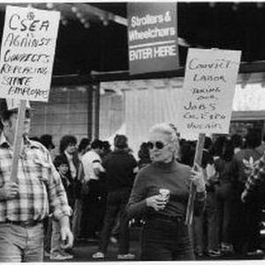 California State Employees Association members picket at Cal Expo to protest the facility's use of prison inmate workers.