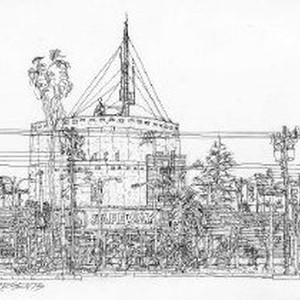 Original pen and ink drawing of The Alhambra Presents in Sacramento