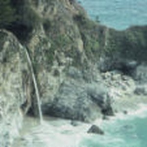 Water from McWay Falls streams onto a secluded cove at Big Sur.