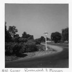 Street scene at the northwest corner of Ravenwood Avenue and Misson Avenue in the Town and Country area and showing the condition of the shoulder of the road.