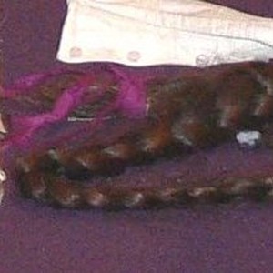 A braid of dark brown hair.