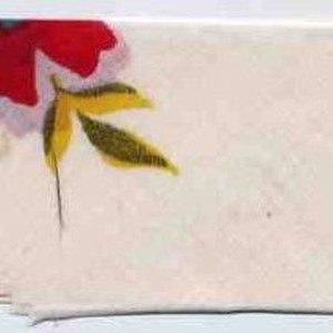 Commercial fabric samples; "183" white cotton with red, yellow, blue, and green floral printed pattern; mounted on cardboard