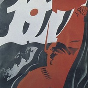 Soviet poster dedicated to the 1917 Ocotber Revolution in Russia. Text reads, "Oktiabr'. 1917 / Октябрь. 1917", meaning, "October. 1917". [Description English/roman)]