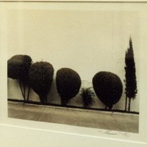 Black and white photograph of six bushes against a white background by artist, Sharmon Goff. On exhibit at the Crocker-Kingsley Exhibition.