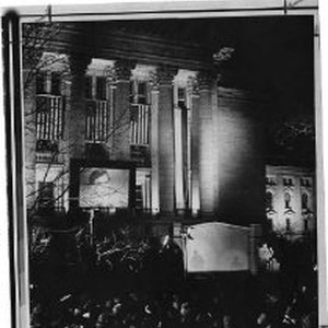 "Spectators at the Wisconsin Capitol got to watch two identical images of California Gov. Edmund Brown Jr. Friday night when he appeard in a live television program directed by Francis Ford Coppola. One of the images was projected on a large screen set up on the side of the Satehouse for the event."