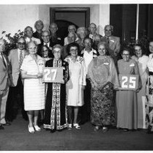Photograph of Neasham with former classmates at the Calistoga High School Reunion, 1978
