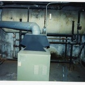Interior view of the Merrium Apartments before demolition showing air conditioning system