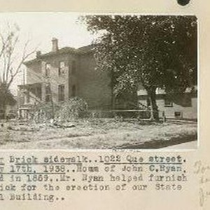 View of 1022 Q Street. Home of John C. Ryan, built in 1869. A brick sidewalk runs in front of the building. The building was torn down in June 1949.
