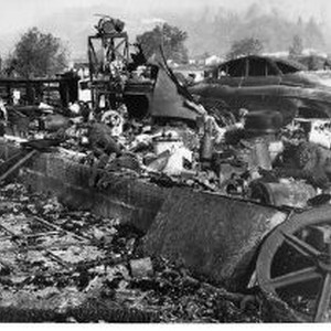 The photo caption published in the Sacramento Bee on September 22, 1964 states: "L. A. McFall of Calistoga, Napa County, stands beside his burned out machine shop on State Route 29 north of the city which burned when a fire raced along the highway. McFall and firemen saved his home, but the machine shop and a barn burned. He said his loss was $20,000."
