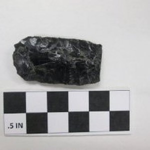 Obsidian projectile point, removed from Fremont mound. Point broken.