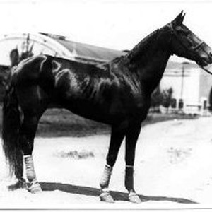 Thoroughbred horse stands for portrait at fairgrounds.