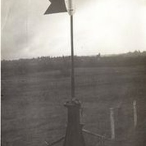 Photo--black and white: Metal railroad flag of the P&SR Railway.