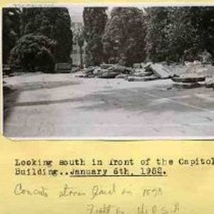 Typed on binder page "Looking south in front of the Capitol Building..January 6th, 1952". View of concrete walkways being replaced.
