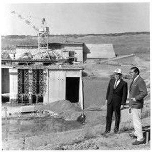 Neely Gardner, left, deputy director of the California Department of Water Resources, explains the Oroville Dam Project to John Darling, an Australian investment banker.