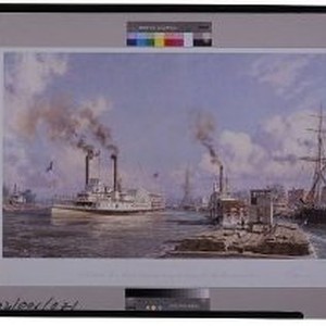 Negative of a limited edition (#217/750) lithograph by John Stobart: "Sacramento: The Celebrated River Steamer 'Chrysopolis' Leaving the Landing for San Francisco, 1870."