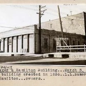 View of the Baker & Hamilton Building, a brick building built in 1865 by L.L. Baker and R. M. Hamilton.