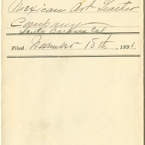 There are no known copyright restrictions associated with these digital images. We encourage the use of these images for personal, study, and educational purposes. Please credit “Courtesy of California State Archives.” The California State Archives and the Friends of California Archives cannot be responsible for any use of these images, or any liability resulting from their use. The Archives is interested in learning about any possible copyright restrictions and will gladly remove any image that is in violation.