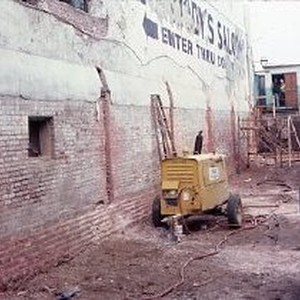 Old Sacramento. View of the Pacific Stables building on the corner of Second and L Streets. This view is of the site as it is prepared before reconstruction.