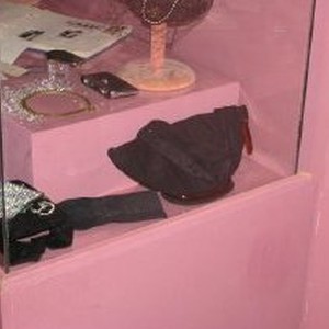 A pair of black cotton woman's gloves decorated with rhinestones.