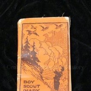 Boy Scout Diary 1929 Boy Scouts of America Soft bound with 256 pages; cover is orange and black with pen drawing of a Boy Scout looking at flying birds.