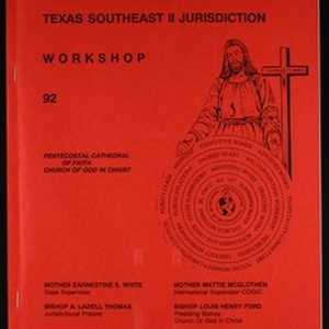Women's day program and workshop program, "Christian women united for effective leadership in these crisis times", Texas southeast, Pentecostal Cathedral of Faith Church of God in Christ, 1992 August 7. [Description English/roman)]