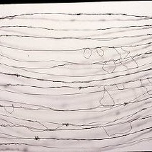 Wire sculpture with 'loose threads' entitled "1-5-95," by San Francisco artist Susan Marie Johnson.