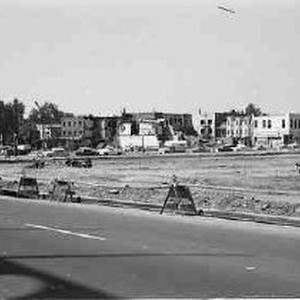 Photograph of demolition and redevelopment of lot. Exact location unknown.