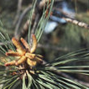 Close up of male torrey pine cones taken at the Rancho Santa Ana Botanical Gardens.