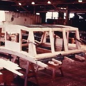 Old Sacramento historic district. View of the North Pacific Coast Railroad, caboose under construction at the Bethleham Steel Company