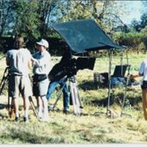 Photo--color: A film crew at work during the filming of the 1993 movie " Quest of the Delta Knights." A large portion of this movie was filmed at the Renaissance Pleasure Faire in Black Point, Novato, California. Performers from the Faire were employed as extras in various scenes throughout.