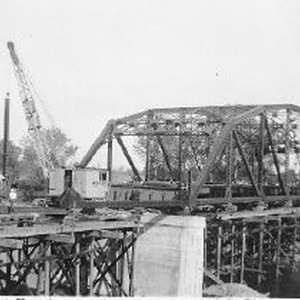 View of steel being erected "with first vertical to be placed in span No. 2."