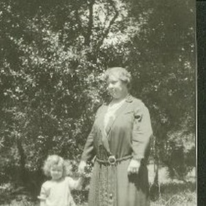 Bette at about 3 years old stands with large woman named Mollie.