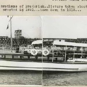 View of the "Osceola" cabin cruiser, owned by Mr. P.A. Harg of Broderick. The old Southern Pacific(I Street Bridge) is in the background.