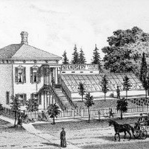 Photograph of a drawing of the Park Nusery and residence of F.A. Ebel. Drawing from Thompson and West's book, "History of Sacramento County." Copied from collections of the California State Library. Used in an exhibit at the Discovery Museum (1997) on founders and editors of Sacramento newspapers.